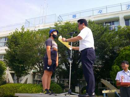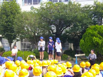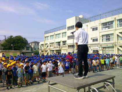 次に表彰です。世田谷区の「わんぱく相撲大会」5年生の部で優勝した子の表彰です。素晴らしい成績ですね。おめでとうございます。また、今日から2週間教育実習も始まります。5年生を中心に研修してもらいます。子どもたちと思い出に残るよい実習になるようにしていきます。今週から水泳の学習も始まります。安全に学習できるように指導していきます。