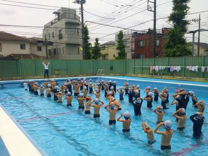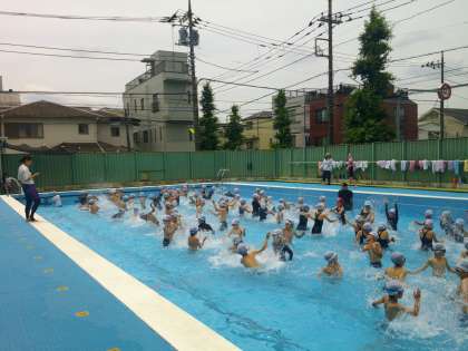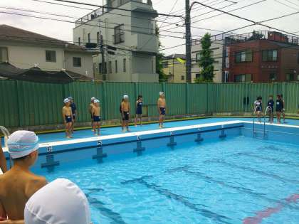 今日は天候に恵まれ、水泳の学習をすることができました。4年生は今年度初の水泳ですので、プール開きをしました。実行委員の子たちが司会をして、クラス代表の児童のあいさつでは、「自分の目標に向かって頑張りましょう。」「水が苦手な人もいるけれど一緒に頑張りましょう。」などと立派に話してくれました。これから夏の間、安全に水泳指導を進めていきます。