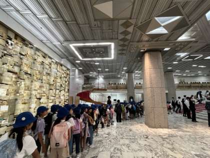 4年生無事に日生劇場に到着しました。これから劇団四季さんによる、ミュージカル「ジャック・オー・ランド〜ユーリと魔物の笛〜」を鑑賞します。帰りは雨が予想され、いつもより遅い時間の解散になりますが、保護者の皆様よろしくお願いいたします。