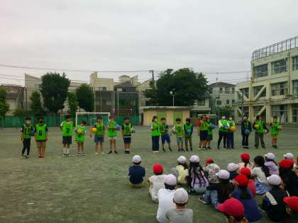 今日の朝の活動は2、4、6年生の児童集会でした。集会委員会さんが、準備、司会進行をしてくれました。今日の遊びは「中当てドッジ」。ボールを転がして、内野の人に当てます。たくさんのボールが来るので油断できません。みんなで楽しむことができました。集会委員会のみなさんありがとうございました。次の遊びも楽しい企画をお願いしますね。