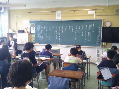 主に5年生に入っている教育実習生の研修もあっとうい間に1週間が終わりました。今日は指導教官の先生が見守る中ですが、社会科の授業をT1として指導していました。来週も頑張って欲しいです。6年生は、夏の短歌作りや、英語で日本を紹介する活動などを集中して取り組んでいました。一週間の最後の日の午後は収集し辛い時間ですが、みんな頑張っていて素晴らしいと思いました。