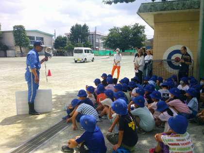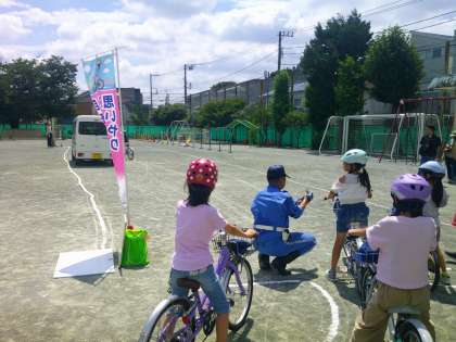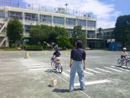 3年生は今日自転車教室を行いました。玉川警察の方から、「ぶたはしゃべる」という合言葉を教えていただきました。「ぶ」ブレーキ「た」タイヤ「は」ハンドル「しゃ」車体「べる」ベルという意味です。運転前にしっかりと点検できるいいですね。また信号や見通しの悪い交差点を再現していだき、実際の道路ではどのようにしたら安全なのか教えていただきました。暑い中、たくさんの皆様にご協力いただきました。玉川警察の皆様、校外委員会の皆様、ボランティアの皆様本当にありがとうございました。今日の授業を通して、子どもたちが事故なく、安全に自転車を運転できるようになったと思います。