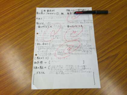 夏を涼しく爽やかに過ごすためにはどのようにすればよいのか。家の中での工夫や外での工夫を考えたり、学校ではどんな様子なのか調べたりしています。校長室の気温なども調べてくれました。生活に直接生かせる学習ですね。