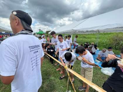 アドベンチャーin多摩川無事に終了しました。スピード部門で3位、デザイン部門で1位という素晴らしい成績でした。出場した10艇どの子供たちもみんな楽しくいかだ下りを楽しむことができました。お昼には流しそうめんまでしていただき、子どもたちは大喜びでした。これまで子どもたちのために、運営やご準備いただいた関係者の皆様本当にありがとうございました。子どもたちにとって夏休み最後の最高の思い出ができました。来年もどうぞよろしくお願いいたします。