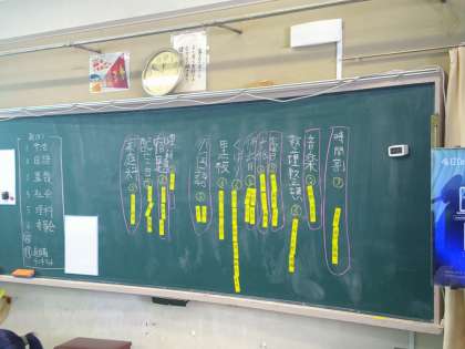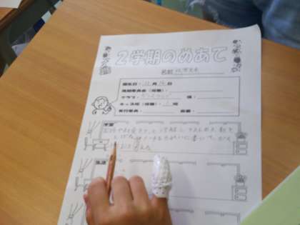 学級会で2学期のクラスの係活動について話し合ったり、自分の目標を決めてカードに書いたり、夏休み中の出来事を、タブレットを使って紹介したり、夏休みビンゴをして、友達にたくさん質問したり、それぞれのクラスが初日の授業を楽しそうに行っていました。