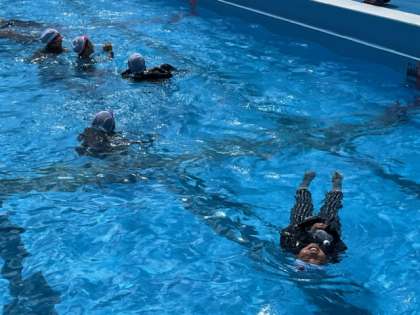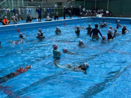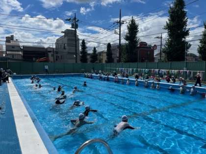 今年の水泳学習も終盤、今週は着衣泳を各学年で実施します。服を着たままだとどれくらい泳ぎ辛いのかを確かめたり、ペットボトルなどにつかまって浮く練習をしたり、いざというのさときのための練習をしました。