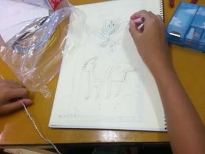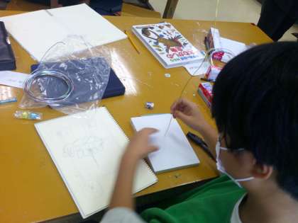 等々力フェスタへ向けて作品作りに一生懸命に取り組む等々力小学校の子どもたちですが、今日は5年生が「未確認アルミ生物」を立体工作で作っていました。まだ下描きの段階の子もいます。個性豊かな作品が出来上がるのが楽しみです。