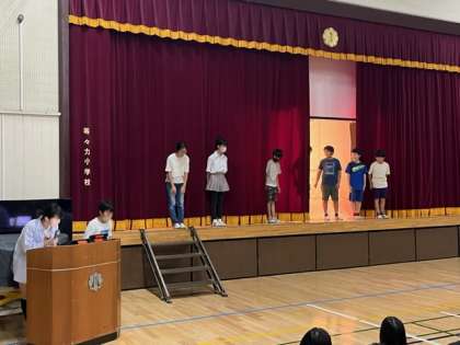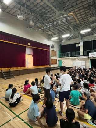 今日の朝の活動は2、4、6年生の児童集会がありました。集会委員会さんが用意してくれたのは、シルエットジェスチャーゲーム。体育館の舞台に影を作り、みんなはそのジェスチャーが何をしているのかを当てます。進行のテンポもよく、とっても楽しい集会となりました。集会委員会のみなさんありがとうございました。