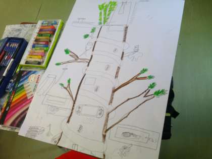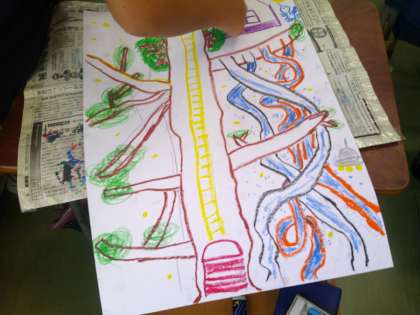 とどろきフェスタへ向けて作品作りに取り組んでいる子供たちですが、今日は3年生を紹介します。テーマは「大きな木が1本あったら」。大木の中は子供たちの夢がたくさん詰まっています。それぞれの子どもたちが個性豊かに想像を膨らませて作品を作っています。完成を楽しみにしていてくださいね。