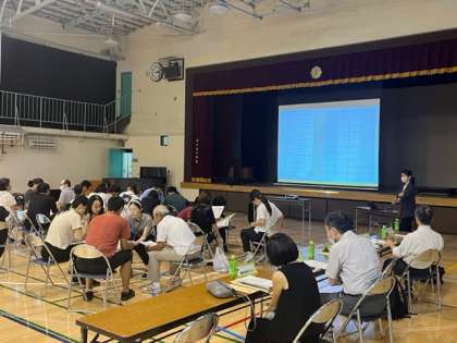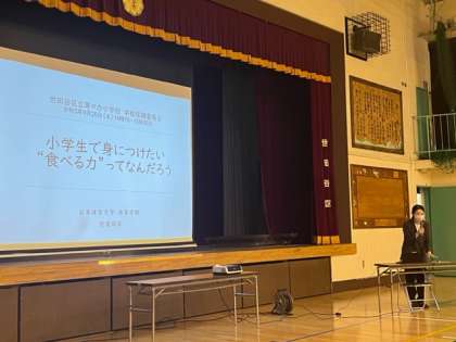 後半は、日本体育大学体育学部助教の安達瑞保先生から「小学生で身につけたい食べる力ってなんだろう」を講演テーマとしてお話いただきました。学童期の子たちが意外と食べる量が少ないことや副菜を取り切れていないことなど、バランスの良い食事、小学生が身につけたい食べ方などについてお話しいただきました。また、栄養状態をより良くするためのアドバイスを5年生にするというグループワークも行い研修を深めました。給食は食べ切ることでバランスよく栄養を摂取できることもご指導いただきました。