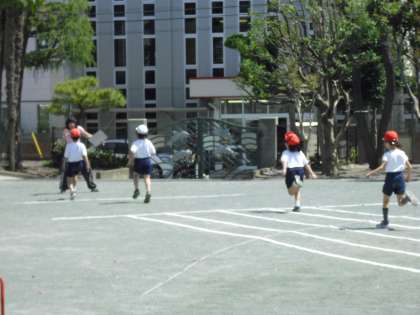 今日の2年生は、体育がありました。3クラス合同の体育です。うららかな春の日差しの下、元気にかけっこの練習です。「よーい ドン」の合図で力いっぱい走りました。何より素敵だったのは、応援です。「がんばれ!」「もう少しだ」などたくさんの優しい声をかけていました。がんばって走ってきた友達に自然と拍手も送っていました。友達思いの優しくて明るい学年です。