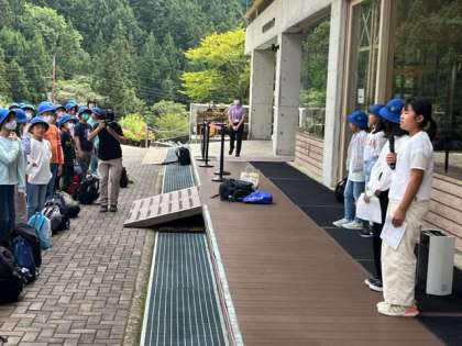 ふじやまビレジに到着し、開開式を行いました。川場村は天気が良いです。代表児童のあいさつも立派でした。