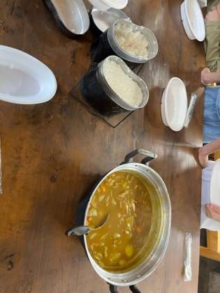 無事に全部の班のカレーとご飯が炊き上がりました。少しご飯が硬かったり、カレーがシャバシャバだったりしましたが、みんなおいしくいただいています。みんなで協力して初めての飯盒炊さん