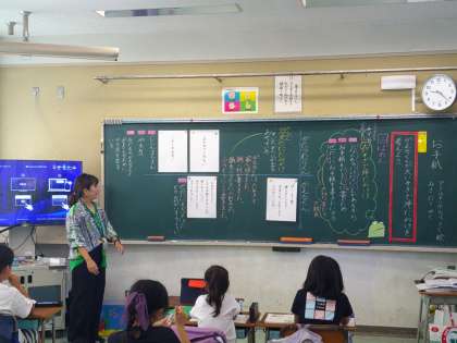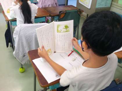 国語の学習では「お手紙」を読み深めています。かえるくんと、かたつむりくんの会話から、登場人物の気持ちを考えています。気持ちを考えた後の音読はとても上手になっていました。音楽の学習では「かねがなる」を2つのパートに分かれてきれいな歌声で歌っていました。