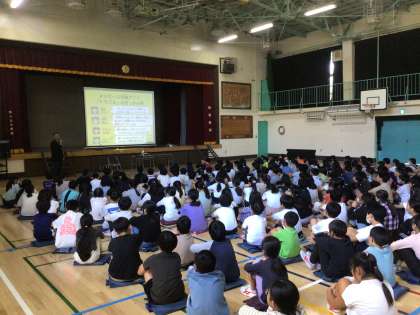 今日は玉川警察署の方をお招きしてセーフティ教室を行いました。インターネットの危険性について、具体的な事例を基に学習することができました。スマートフォンやタブレット端末の安全な使い方について、ご家庭でもよく話し合いをしていただければと思います。