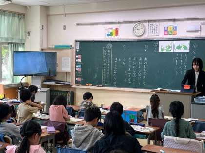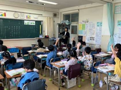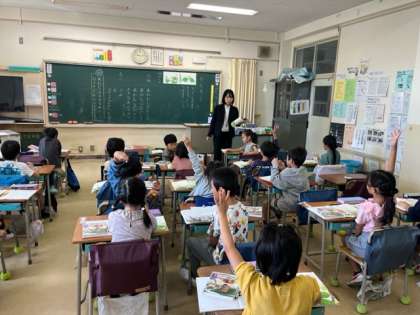 国語「やくそく」の学習です。今日のクラスは単元の学習が始まったばかりですので、みんなで音読したり、登場人物を確認したりしました。あおむしたちはどんなやくそくをしたのでしょうか。みんなよく頑張っていました。