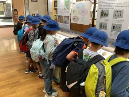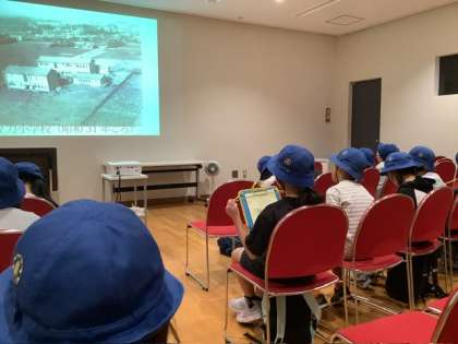 昭和31年頃の等々力小学校の写真をみて、今との違いに多くの子達が驚いていました。