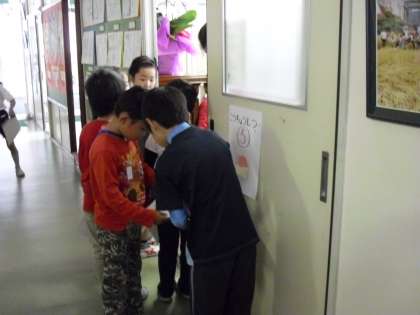 生活科の時間、2年生が1年生に学校を案内しました。優しい言葉と態度で、校長室や職員室、音楽室や図工室などについて説明していました。1年生は、すっかり学校に慣れ、学校の様子を楽しく勉強していました。2年生は、お兄さん・お姉さんぶりを発揮していました。