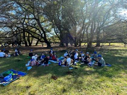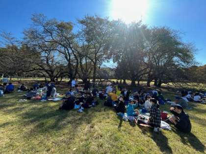 砧公園に到着しました。お弁当タイムです。まだみんなリラックスして楽しそうにお弁当を食べています。朝早くからのご準備ありがとうございました。