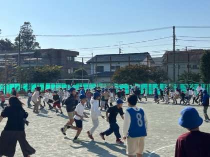 爽やかな秋晴れの朝、2、4、6年生は集会委員会さん企画の児童集会を行いました。鬼に捕まらずに6箇所陣地をケンケンやジャンプで回っていきます。今日の鬼は先生方。みんな楽しく体を動かしました。集会委員会さん楽しい企画運営ありがとうございました。