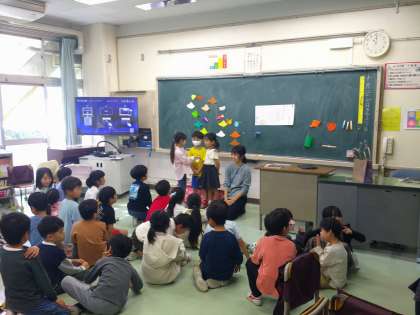 今日は矢口特別支援学校に在籍する児童との副籍交流会が行われました。お楽しみパーティーのプログラムは、1初めの言葉と紹介、2読み聞かせ、3動物当てっこ、4猛獣狩りにいこうよ、5じゃんけん列車、6終わりの言葉、7お楽しみです。司会の子どもたちも一生懸命に進行していました。1時間と短い交流会でしたが、楽しく過ごすことができました。