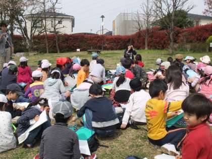 等々力小学校からとび出して、学校の近くの八丁目公園まで、町探検に行きました。
