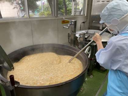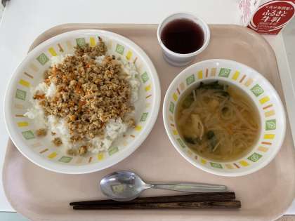 高野豆腐は、豆腐を凍らせて乾燥させて作られる「保存食」です。日本で昔から作られてきた保存食です。今日は高野豆腐を戻してからミキサーにかけて、ひき肉と野菜といっしょに煮て、そぼろを作りました。お味噌汁にも、「保存食」の切り干し大根を使いました。どちらの食材も、ぎゅっと凝縮されているので、栄養もギュッと詰まっています。そしてうま味成分も倍増するそうです。一石二鳥も三鳥もする「保存食」をぜひおうちでも取り入れてもらえたらと思います。