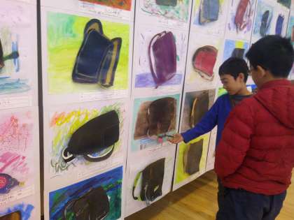 いよいよ明日からに迫ったとどろきフェスタ。今日は6年生が土曜日に行う、ミニ学芸員の練習をしました。私も6年生のミニ学芸員さんに、「こちらの作品は4年生が想像力を働かせて・・・。」「この作品の中で私のお気に入りはこれです。シンプルながら飾り付けも細かくすてきで・・・。」「他の作品もお楽しみください。」など、本物の美術館の学芸員さんのように、丁寧に分かりやすく、作品を楽しめるように紹介いただきました。さすが6年生です。本番を楽しみにしていてくださいね。今日の午後に全職員で最終点検をして、明日からとどろきフェスタ、等々力美術館の開館です。どうぞよろしくお願いいたします。