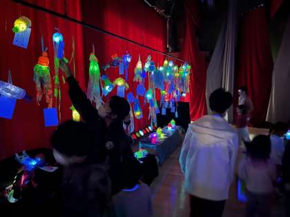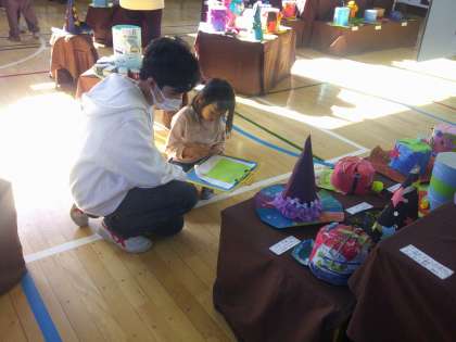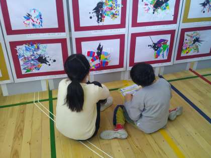 今日からとどろきフェスタが開催されています。この時間は1年生と6年生の鑑賞時間。ペアになって、6年生が1年生を案内してあげています。体の小さい1年生に合わせて膝をついて話をしてあげたり、次は何年生を観たい?と優しく声をかけてあげたり、心温まる光景です。この経験を活かして、1年生は明日、三島幼稚園の年長さんたちを案内する番です。作品の鑑賞を楽しむだけではなく、すてきなキャリア教育になっています。