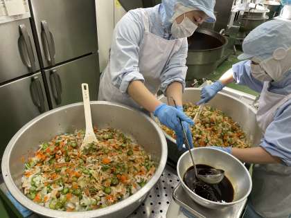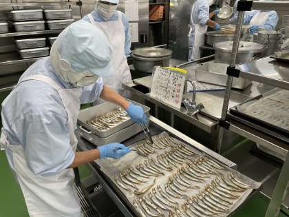 今日は、「かみかみ給食」の日でした。かみごたえのある食材を使った給食です。シャキシャキ野菜は、れんこん、大根、人参、きゅうりを硬めに茹でました。焼きししゃもは、よく噛めば、丸ごと骨ごと食べられます。上手に骨を残して食べている子もいましたが、骨も柔らかいから食べられることを伝えると、骨だけ少し食べて、「ほんとだっ」と言っていました。