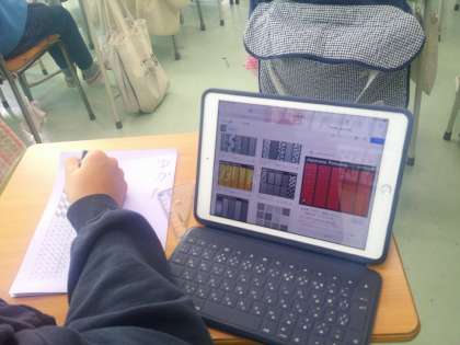 日本の伝統文化を学習している6年生。「ねりきり」を調べている子がいました。美しく細工された和菓子も日本の伝統文化だなと思いました。また、別のクラスでは卒業文集の清書。一生の記念に残る原稿を真剣に集中して書いていました。