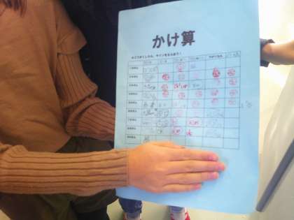 今日の朝の時間は、保護者の皆様にもお手伝いいただき、かけ算九九検定をしました。今日で9の段まで全部クリアできた子もいますし、ランダムに出題されても答えらえるかチェックしてもらいました。みんな一生懸命に覚えていました。かけ前九九は、割り算にもつながる計算の基本になります。各ご家庭でも検定をしてあげてください。お手伝いいただいた皆様本当にありがとうございました。