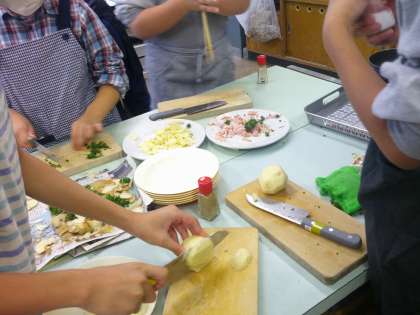 今日は家庭科の調理実習で2つのクラスがジャーマンポテトを作りました。6年生ともなると慣れたもので、班で役割分担して上手に調理していました。材料の大きさや味付け加減にも班ごとの違いがあり、それぞれの個性を見ることができて面白かったです。ご自宅でも、ぜひ振舞ってほしいと思います。