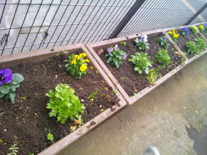 昨日委員会活動の記事で紹介しましたが、ボランティア委員会さんの飾り、栽培委員会さんのお花の植え替えは写真のとおりになりました。かわいい飾りになりましたし、お花もとてもきれいです。ご来校の際にご覧ください。各委員会のみなさんありがとうございました。