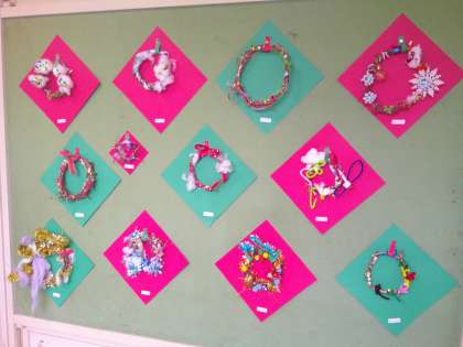 アサガオを育ててきた1年生。観察をしたり、種を取ったりしてきました。観察が終わり枯れてしまったつるを使って、冬の飾りを作りました。みんな上手につるを丸めてかわいい飾りを作ることができました。ご来校の際にご覧ください。