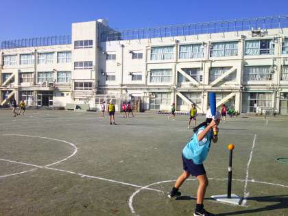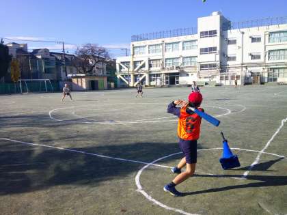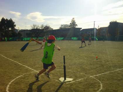 6年生はTボール。野球の話題が世間を賑わせていますが、ボールをバットでしっかり打てた時、しっかりとボールをキャッチできた時はとても気持ちがよいようです。みんな楽しそうに試合をしていました。寒くなってきましたが、日差しもあり、体を動かすにはよい気候です。みんな元気に取り組んでいます。