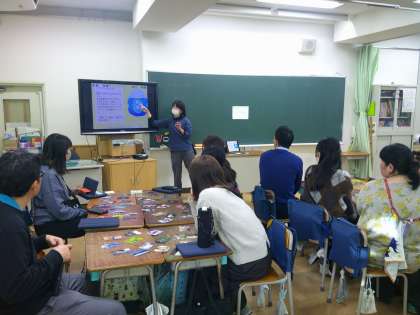 今日の放課後の時間を使って、職員の研修会を行いました。テーマは「リフレクション」、講師は本校の主任教諭です。リフレクション協会が作成した、振り返りのためのイメージ・カードを使って2学期を振り返り、3学期への期待をイメージしました。スーパーボールすくいの写真を選んだ先生は、学級の子どもたちはポイが破けながらも(失敗しながらも)、みんな頑張ってすくいあげた(やり遂げることがたくさんあった)などと振り返りました。児童の振り返りにも使える研修となりました。