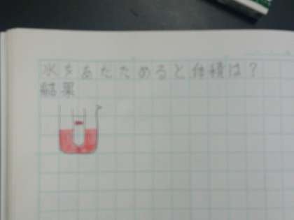 空気や水の性質を学習している4年生。今日は「水を温めると体積はどのようになるのか」という問題の考察をしていました。また、この水の性質と似たようなことを活用した身の回りのものも考えました。学習を生活に結び付けて考えています。