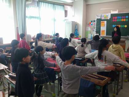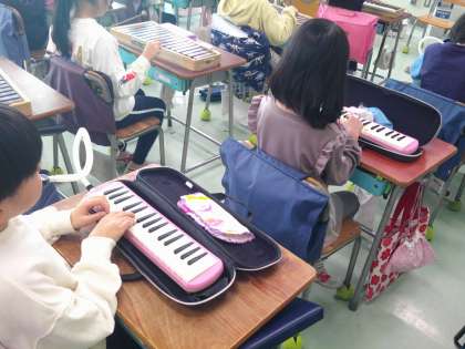 2学期も終盤、専科の時間も2学期の最終回の学級が多いです。1年生の音楽では、これまで学習してきたことを担任の先生にも聴いてもらおうと、サプライズ演奏会を行いました。12月の季節にふさわしい曲を元気に歌ったり、きらきら星を鍵盤ハーモニカや木琴で演奏したり、2重奏まで披露してくれました。素晴らしい成長にびっくり。担任の先生は内緒にしていたことにもびっくり。担任の先生に成長した姿を見てもらいたいという子どもたちの頑張る姿がすてきな学期末の授業でした。