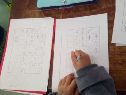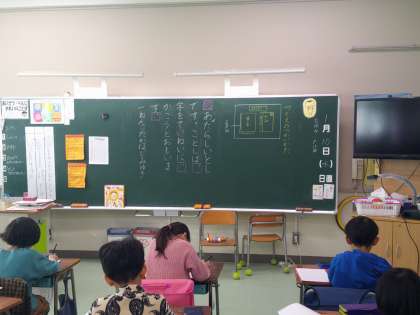 1年生にとって初めての行事です。小学校に入学して覚えた文字を、お手本をしっかりと見ながら書くことができました。