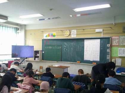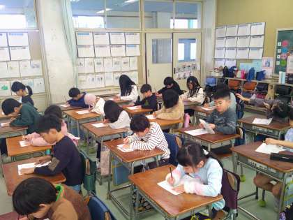 2年生にとっては2回目の硬筆での書き初め。昨年より更に文字の形がしっかりと整い、素晴らしい作品ができました。