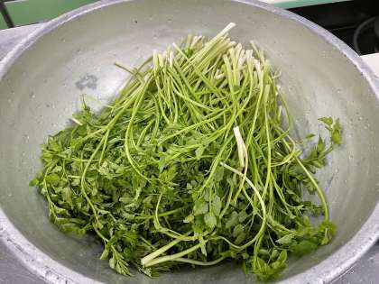 今日は3学期最初の給食でした。お正月にちなんで、お節料理に登場する「松風焼き」「紅白なます」と、1月7日に1年の健康を祈って食べる「七草」を使ったたまご雑炊を作りました。七草は、せり・なずな・ごぎょう・はこべら・ほとけのざ・すずな・すずしろのことです。全て揃えるのは難しいので、せり、すずな、すずしろを使いました。すずなはかぶの葉で、すずしろは大根の葉です。七草がゆは、お正月料理で疲れた胃腸を休める効果もあります。