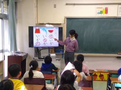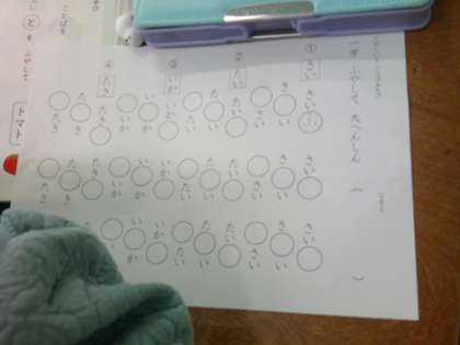 「1文字増やして変身させよう」という学習に取り組んでいます。「まと」に1文字加えると、まんと、まとめ、まっとなどの言葉なります。「さい」に1文字加えると、さいふ、さむい、くさいなどの言葉になります。楽しみながらたくさんの言葉を3文字の言葉を知ることができました。ご家庭でも言葉を見付けてみてください。