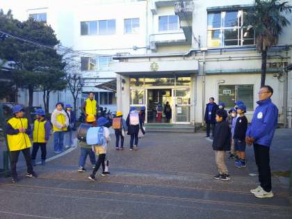 今日も寒さが厳しい朝でしたが、4年生が元気にすてきなあいさつをしてくれました。4年生のみなさんありがとうございました。児童の学校関係者評価アンケートの項目「あいさつをすすんでしている」の肯定的評価が、82.5%に改善したとおり、登校してくる子どもたちもすてきなあいさつをする子がたくさんいます。これからも気持ちのよいあいさつができる学校をめざします。おやじの会のみなさんにも参加いただきました。ありがとうございました。