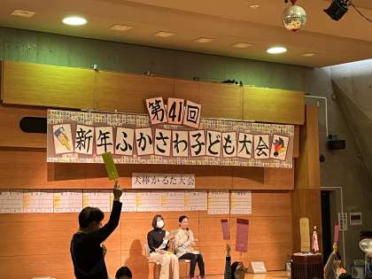 今日はあいにくの雨でしたが、深沢児童館で第41回新年ふかさわ子ども大会が開催され、等々力小や三島幼稚園の子どもたちも楽しく参加させていただきました。中でも犬棒かるたや百人一首大会では、真剣に白熱した競技が行われていました。おやじの会の皆さんは餅つき。35臼つくそうです。美味しいお餅をありがとうございます。その他にもゲームや工作などのブースもありみんな大喜びでした。深沢児童館館長をはじめ職員の皆様、おやじ会、PTAの皆様、関係者の皆様子どもたちの健全育成のためにご尽力いただき、本当にありがとうございました。これからも地域の子どもたちのためにどうぞよろしくお願いいたします。