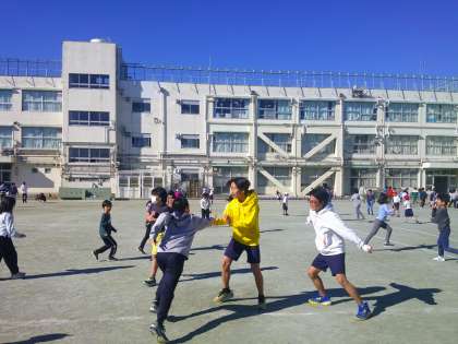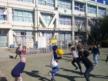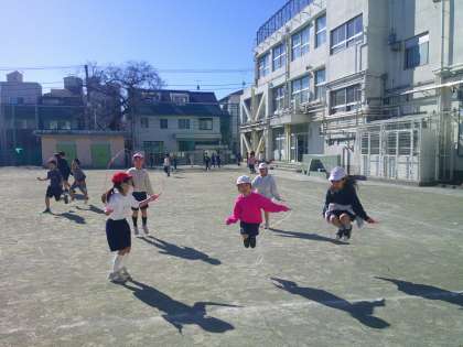 朝晩は寒さが厳しいですが、日差しもあり少し暖かく感じる中休み。子どもたちは元気に外で遊んでいます。小学生の一番人気は鬼ごっこ。ドッジボール、ハンドベースなどいろいろな遊びをしています。縄跳び週間へ向けて短縄跳びで遊ぶ子も増えてきました。楽しみながらたくさん体を動かせています。