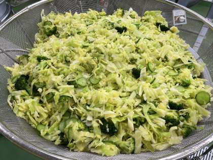 グリーンサラダは、冬の今が旬のブロッコリーを使ってサラダにしました。ブロッコリーは、アブラナ科の野菜で、昨日の給食に登場した菜の花の仲間です。キャベツを品種改良して誕生したブロッコリーは、日本には明治時代に伝わったといわれています。今日は、キャベツときゅうりと一緒に茹でて、玉ねぎすりおろしと、塩・こしょう・お酢・醤油、油とバジルの粉を混ぜ合わせた、特製ドレッシングで和えました。1年生もおかわり続出の美味しいサラダでした。