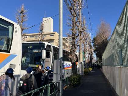 5年生社会科見学に出発しました。森永製菓鶴見工場、北の丸公園、科学技術館に行ってきます。