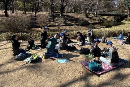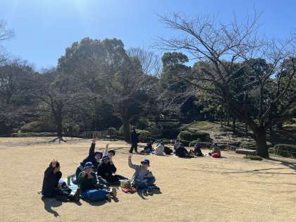 北の丸公園でお弁当タイムです。天気も良くみんな気持ちよく食べています。朝早くからのお弁当のご準備ありがとうございました。