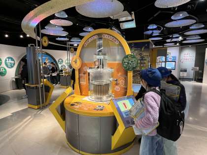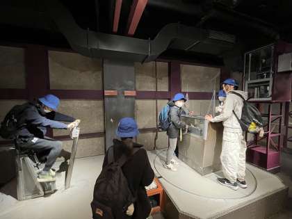 科学技術館に到着しました。グループごとに、科学の様々な分野の体験できる展示物を楽しんでいます。